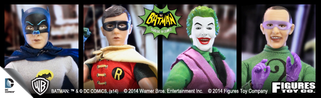 CFO Anthony Balasco states, “It has been my understanding that the collectors community would enjoy collecting retro 8 inch and 12 inch action figures based on the “Batman 1966 Classic TV Series”. When we saw that the rights were settled between the involved party’s we immediately became interested in acquiring the license”. We are proud to say that the collectors will be able to enjoy a vast selection of characters that have never been available before. Our head sculpts will look life like and the cloth costumes will be highly detailed. Series 1 will include Batman, Robin, The Riddler & The Joker. Future series will include The Penguin, Catwoman, Dick Grayson, Bruce Wayne, Egghead, King Tut, Mr. Freeze, Shame, Bookworm, Mad Hatter, Batman (with removable cowl), Robin (with removable mask), The Joker in prison baseball outfit, The Joker in opera outfit, & The Joker in grey suit. All Batman 1966 Classic TV Series figures will be available in both 8 inch & 12 inch starting early Fall 2013.
